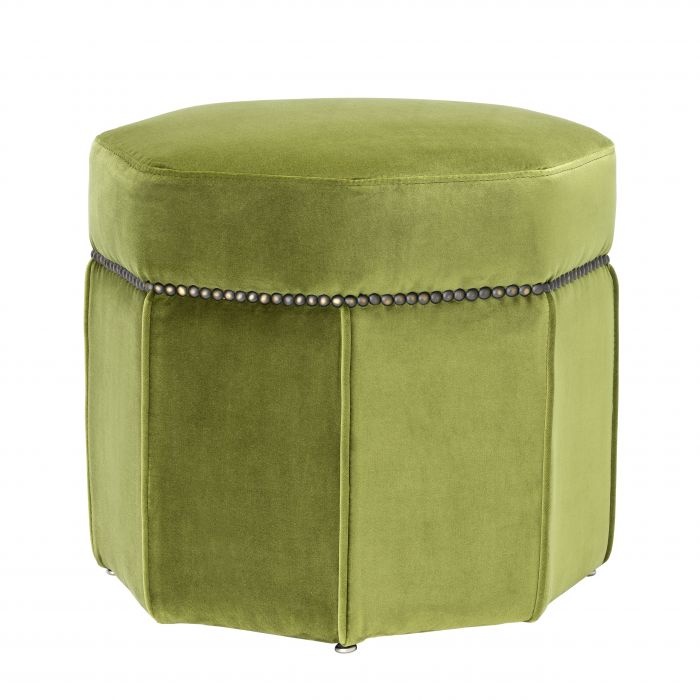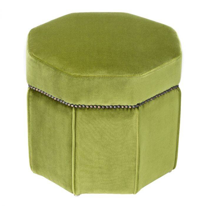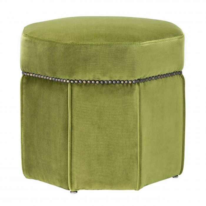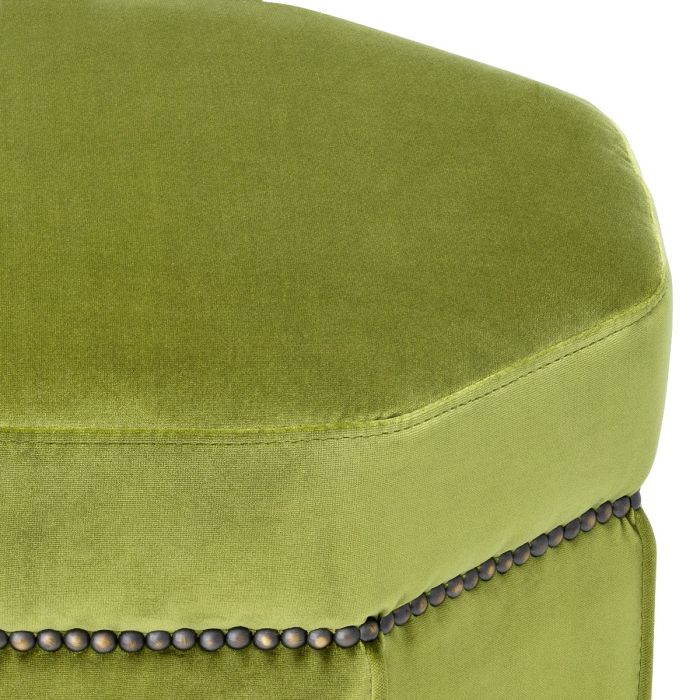 The Bombay Stool is a wonderful asset for your living space or bedroom. Featuring a Bague green upholstered frame with an antique brass nailhead trim, this stool is a stylish extra seating option in your living lounge or a nice stool for your dressing table.