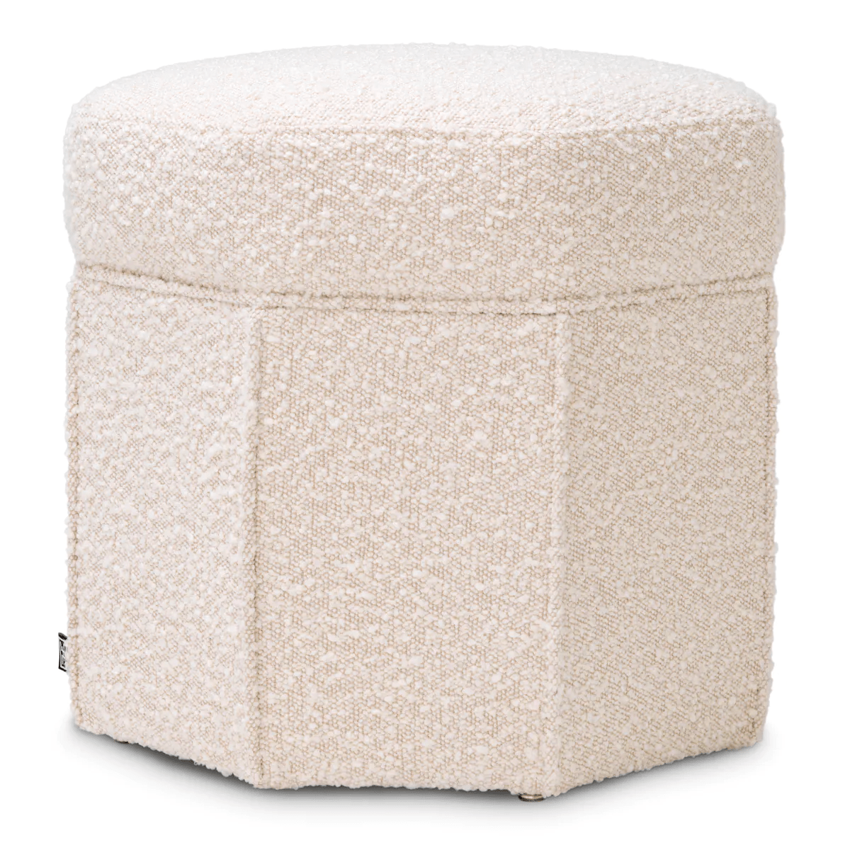 The Bombay Stool is a wonderful asset for your living space or bedroom. Featuring a cream-coloured bouclé upholstery, this stool is a stylish extra seating option in your living lounge or a nice stool for your dressing table.