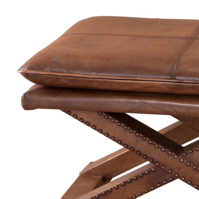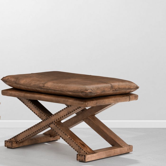 Combining a seating option with a side table, the Brookfield Stool is a great asset for your lounge or bedroom. The padded seat top is wrapped in stylish olive light leather and the linden wood frame is adorned with antique brass studs.