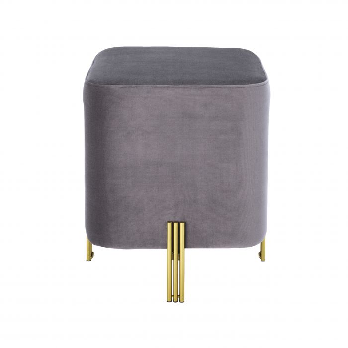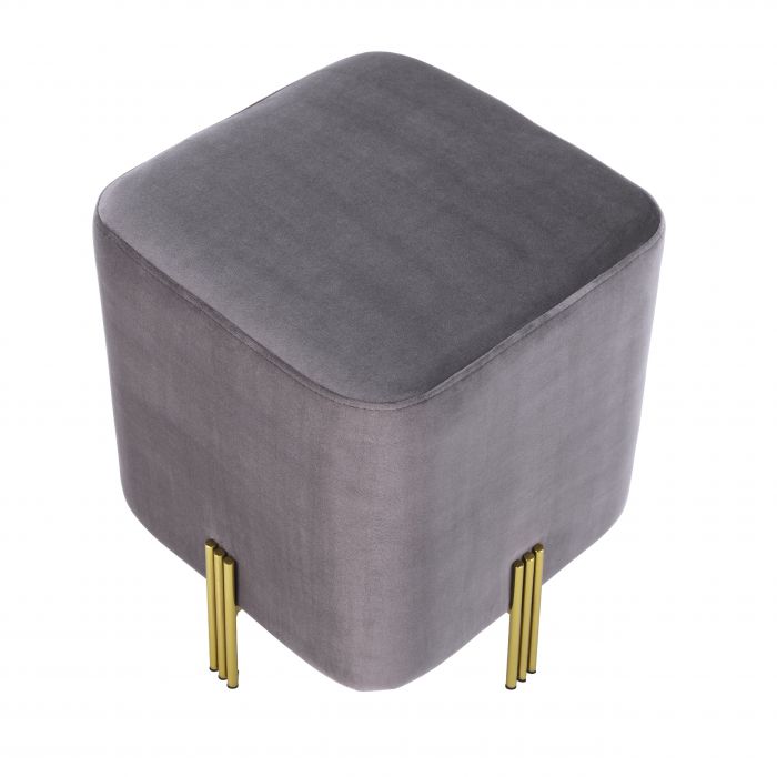 The cube-shaped Burnett Stool stands out by its peculiarly placed legs with a brushed brass finish. This attractive ottoman brings a splash of retro style to your home interior. Its clean lines and soft curves contribute to its chic Mid-Century Modern look, while its Savona grey velvet upholstery rounds out the stylish design.