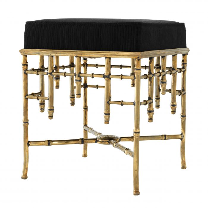 Pairing the opulence of art deco furniture with the organic trend, the Cecilia Stool will be right at home in a vintage or eclectic décor. The albin black seat offers a pleasant seating experience, while the bamboo-like frame with brass finish adds a touch of old world glamour.