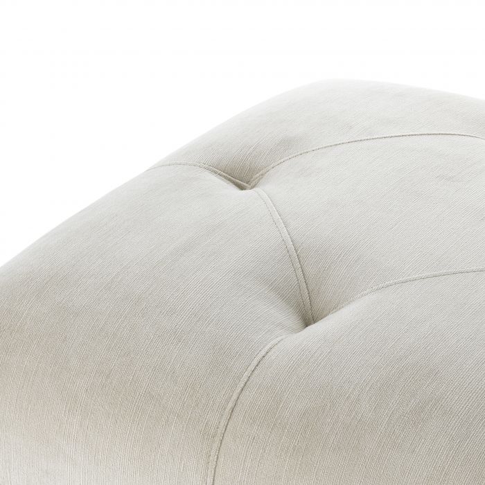 Inspired by the classic Chesterfield furniture, the Cesare Stool in pebble grey upholstery offers a subtle button back design with straight line embroidered stitching. It’s presented with black gunmetal base.
