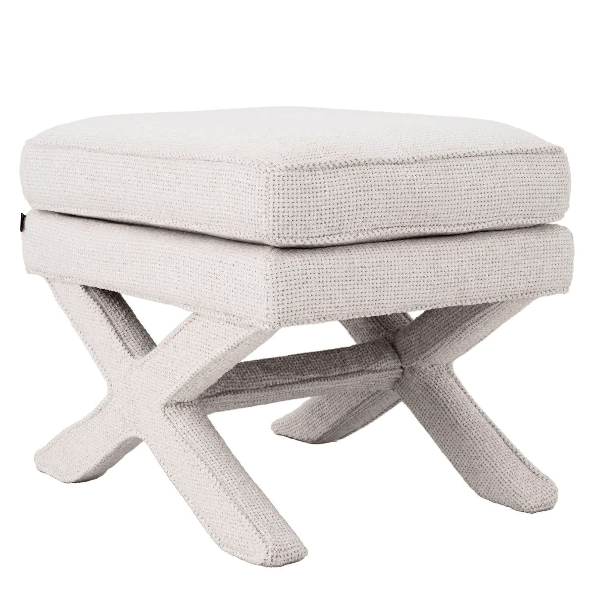 Add a clever and stylish seating option to your lounge, bedroom or hallway, with Ottoman Cordoba. Fully upholstered in a seductive soft-touch Lyssa off-white fabric, this gorgeous footstool rests on a sturdy crossover base for extra dimension.