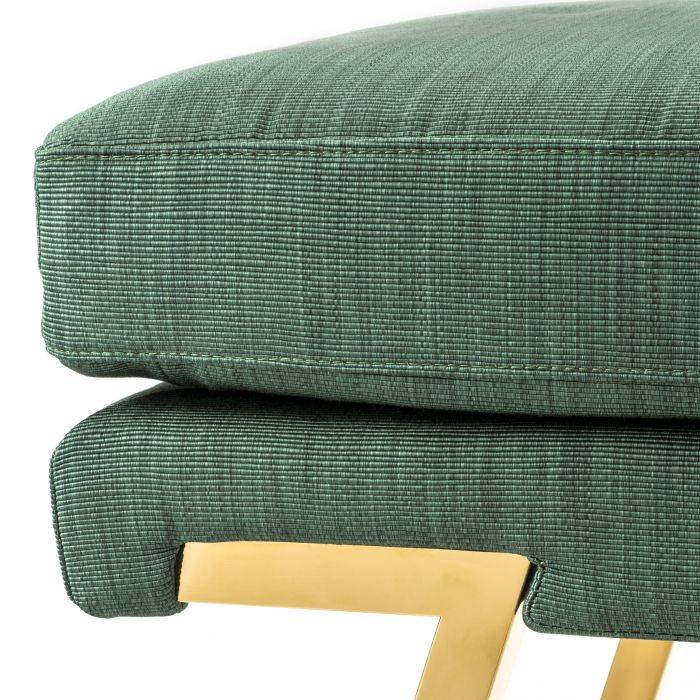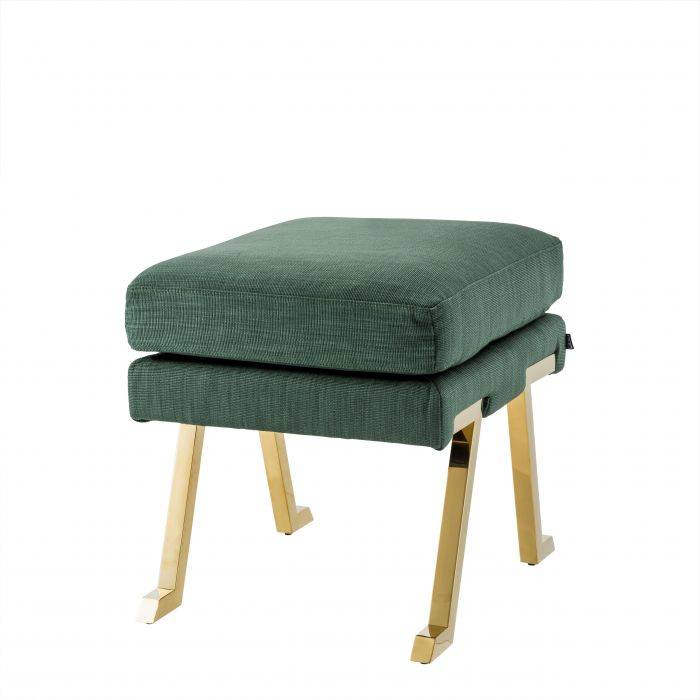 Elevate the style of your interior space with the glamorous Savoy Stool. Drawing inspiration from Mid-Century Modern design furniture, this luxury stool features an albin green upholstery and a gold finished frame. It will be right at home in a vintage or eclectic décor.