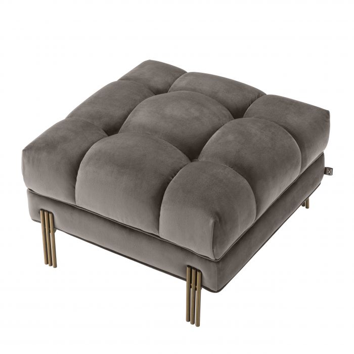 The sumptuous Sienna Stool pairs comfort with high-style. This elegant modern ottoman comes in a tufted upholstery in mellow Savona grey velvet. Gold finished legs add extra glamour to its luxurious look.