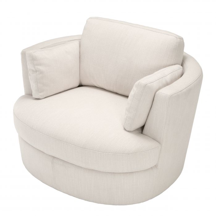 Create an island of relaxation in your living space with the Clarissa Swivel Chair. This sumptuous club chair with swivel base features an Avalon white upholstery. It comes with two cushions for extra comfort and cosiness.