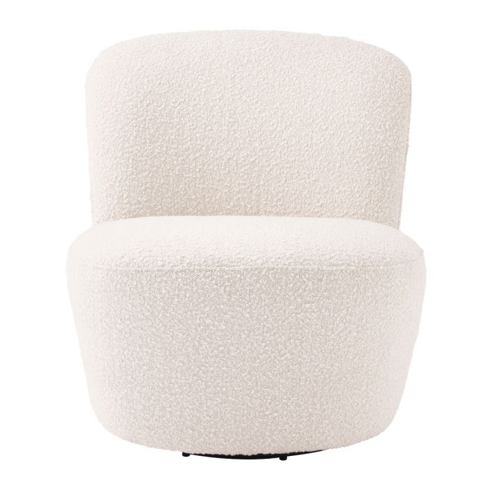 Equipped with elegant curves and upholstered in an off-white bouclé fabric, the glamourous Doria Swivel Chair is a wonderful accent piece for a host of interiors. Designed with a domed back and hidden swivel base, this stylish boudoir chair makes a great addition to your living room or bedroom.