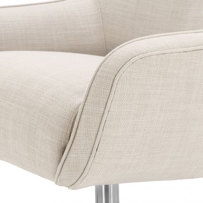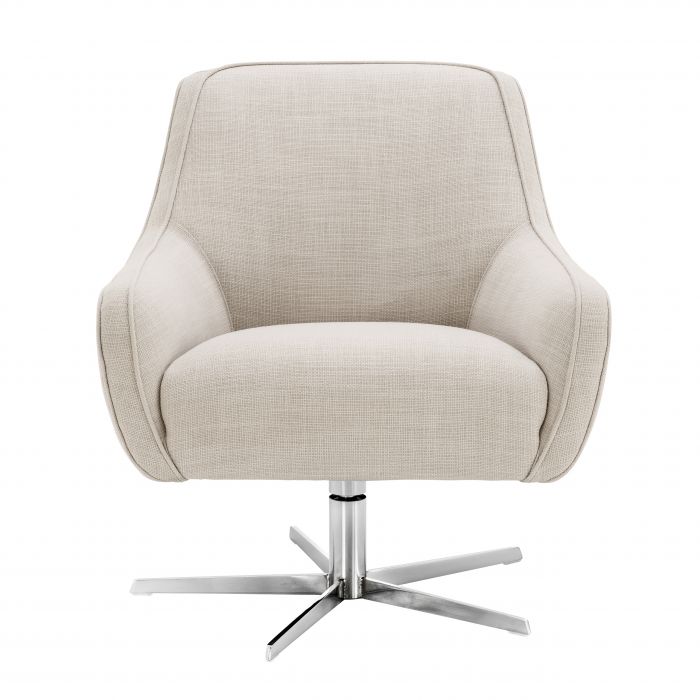 Have a seat in the Serena Swivel Chair. This retro swivel chair looks great in both contemporary and old style homes or offices. With its Panama natural upholstery and stainless steel pedestal base it adds a Mid-Century Modern touch to any space.