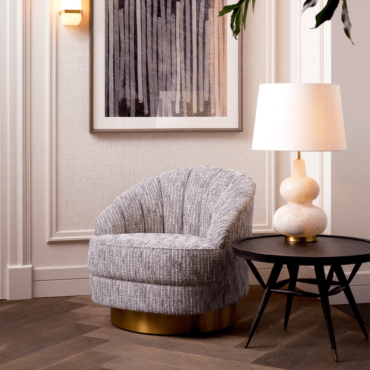Featuring an alabaster body with a soft sheen, Table Lamp Cavo boasts an elegant hourglass silhouette.