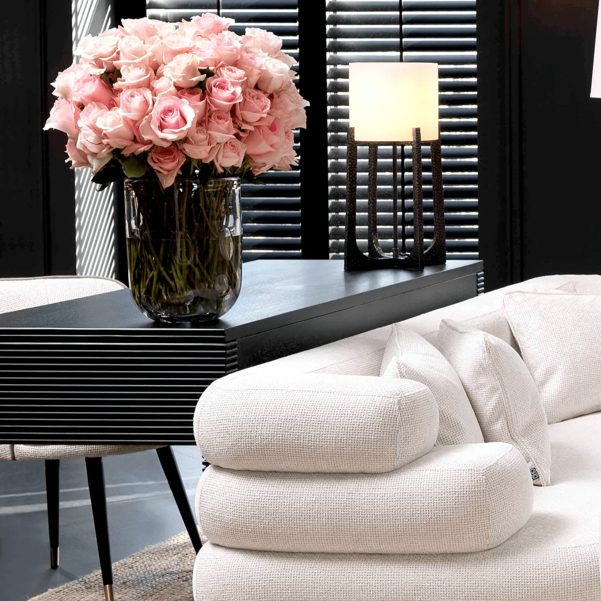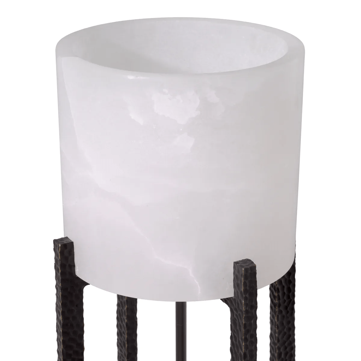 Unobtrusive but elegant, the frame offers reliable steadiness to the lovely lampshade that is carved from a solid piece of translucent alabaster. Pair with Table Lamp Fraser L for extra dimension.