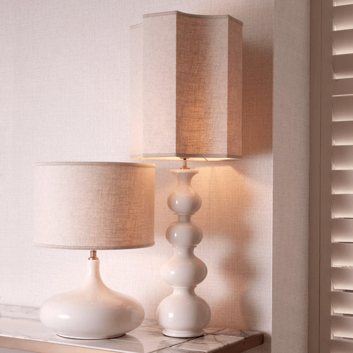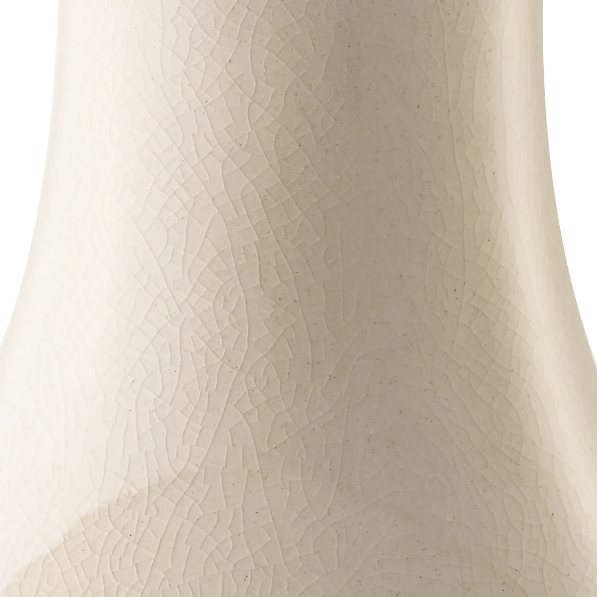 Featuring a crackled white ceramic body with a soft sheen, Table Lamp Jones is all about classic elegance. The fixture has antique brass finish details and comes with a linen mix drumshade that extends the chic style.