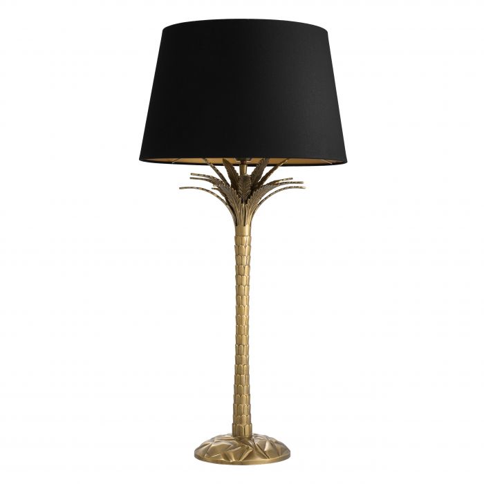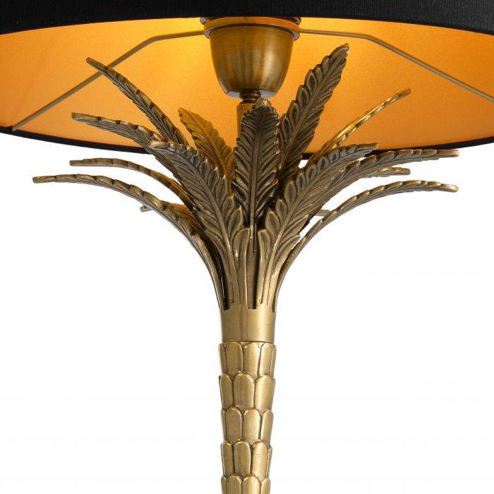 Let your décor transport you to an exotic world with the Palm Harbor Table Lamp. You’ll love its natural design, inspired by plants, with a vintage brass finish to add a touch of glamour to your interior. This gorgeous table lamp comes with a round black lampshade, with a shiny gold coloured lining.