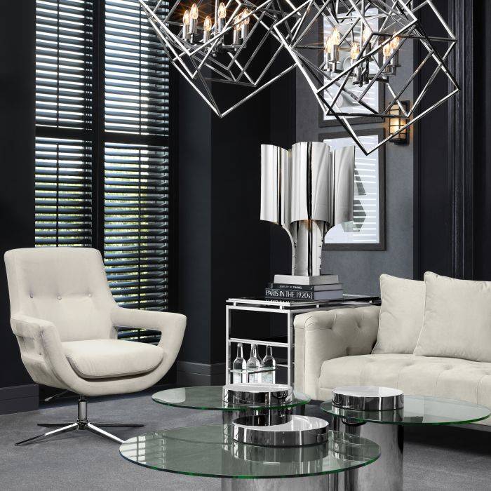 Reminiscent of abstract informal art, the Spiaggia Table Lamp adds modernist appeal to your home décor. This sculptural table lamp comprises a distinctive structure of polished stainless steel. Both lit and unlit, it’s a real eye-catcher.