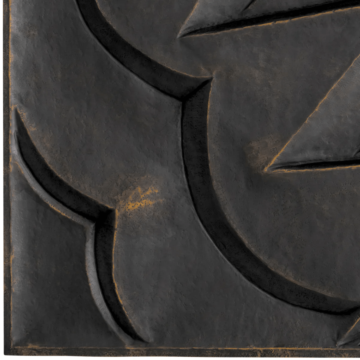 This stunning piece is expertly hammered from brass to reveal a luxurious bronze finish. It makes an impressive addition to any room. Each individual Wall Object Okko is unique, showcasing the exquisite texture and intricate details of the hand-hammered brass. Elevate your decor with the remarkable Wall Object Okko.